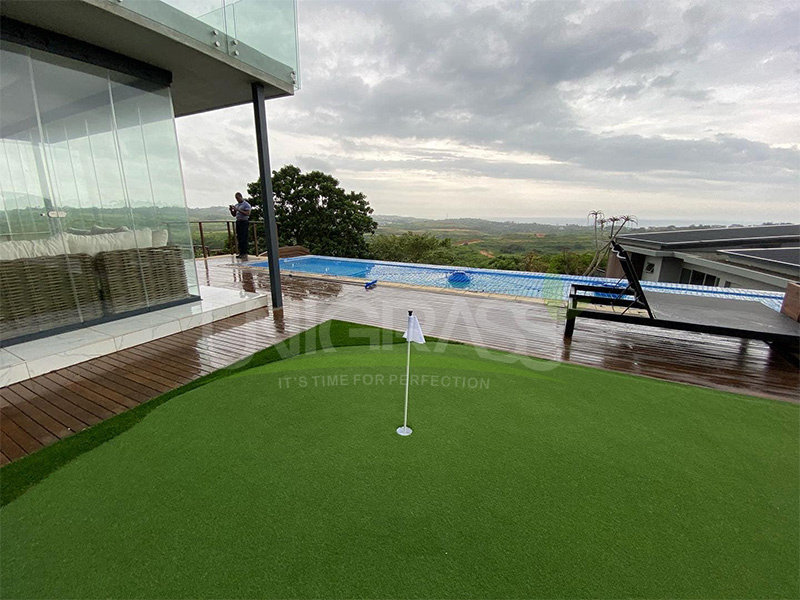 15MM grass height not only ensures the flatness of the grass, but also provides a stable ball rolling effect, allowing players to accurately control the ball speed and direction when putting. This height of turf is optimized to provide ideal resistance and smoothness for putting, so that each shot can roll accurately and smoothly, thereby enhancing the hitting experience. Whether it is a professional golfer or an amateur, you can practice high-quality on this lawn to improve your putting skills.