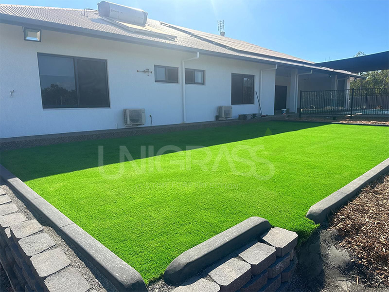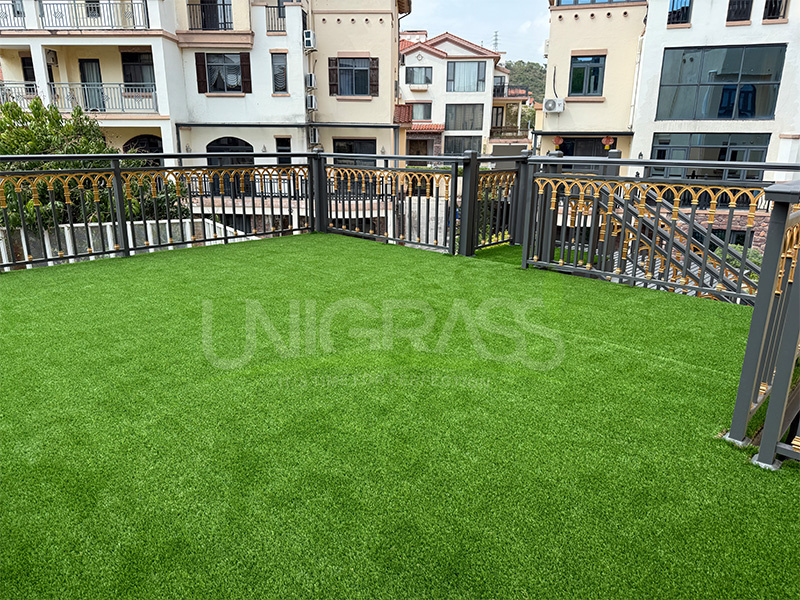 This artificial grass lawn turf adopts high-density grass fiber, which has excellent durability. Even after long-term use, the color remains bright and will not fade due to sun and rain. Its material is environmentally friendly and energy-saving, with excellent UV resistance and weather resistance, suitable for various climatic conditions, and keeps like new for many years. For users, UNIGRASS not only brings excellent aesthetic effects to the site, but also reduces the trouble of maintenance. No frequent mowing, watering or fertilization is required, which greatly reduces maintenance costs, saves time and human resources, and is a real low-maintenance solution.