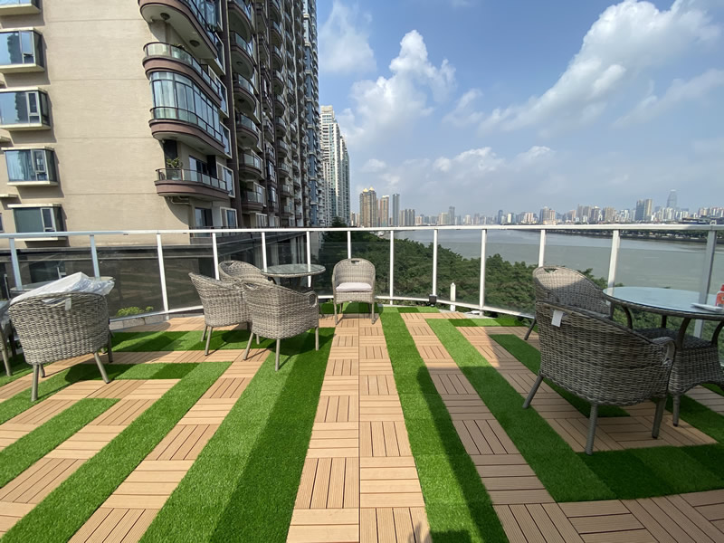 UNIGRASS interlocking artificial grass tiles are suitable for flat and hard surfaces such as wooden decks, concrete terraces or roofs with drainage systems, without complex foundation treatment. Traditional rolling grass installation usually requires laying a gravel layer to ensure drainage and stability, which may not be practical in some spaces (such as roofs and decks).